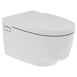 glanzverchromt Wandklosett Keramik weiss, für Einbauspülkasten spülrandlos, Warmwasserdusche mit WhirlSpray-Duschtechnologie, Ladydusche Warmluftgebläse, Geruchabsaugung Fernbedienung, Befestigungs- und Anschlussmaterial Ablaufmanschette, Sitz mit Deckel weiss mit Absenkautomatik, 230 V, 2000 W