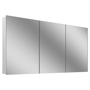 schwarz matt Aluminiumprofil, UP/AP Montage 3 Doppelspiegeltüren (50/50/50) LED-Beleuchtung, 1 x 70 Watt, 1 x 24 Watt Tunable White, dimmbar, 2000-6500 Kelvin 16078 Lumen, 2 Doppelsteckdosen 1 x links und 1 x rechts unten an Zwischenwand Folientastatur innen links an Seitenprofil 4 Glasablagen, IP44 Energieklasse C
